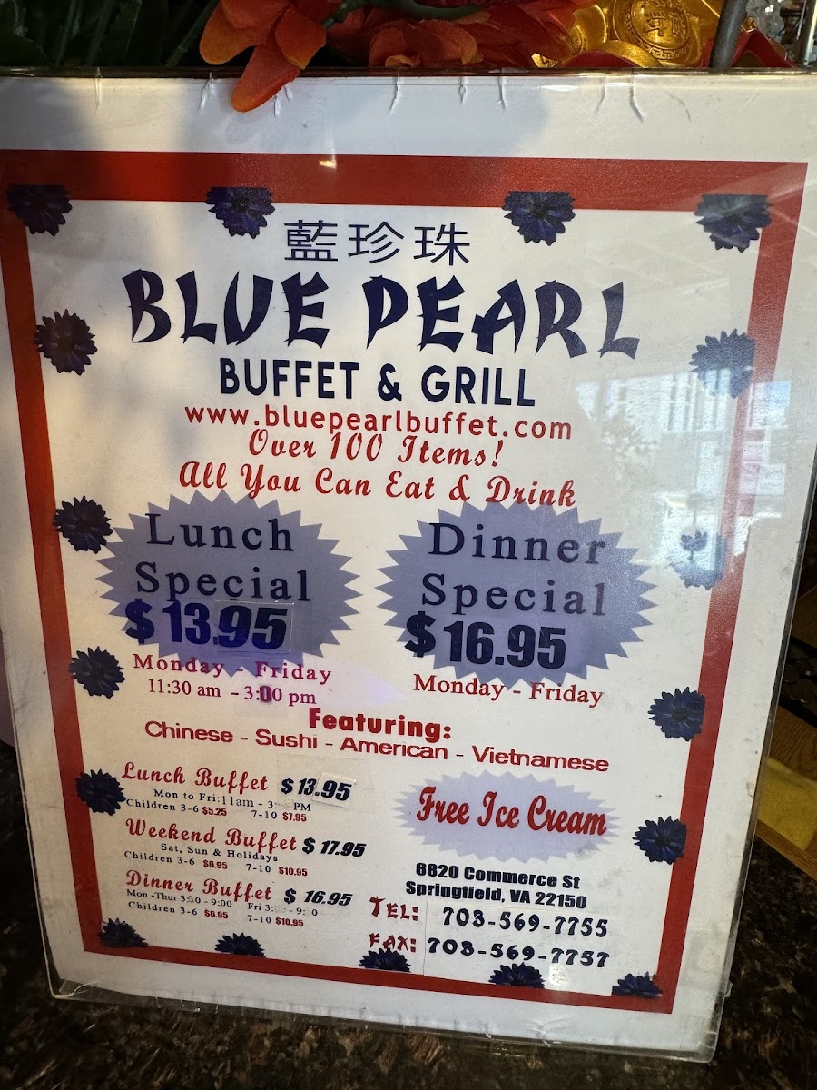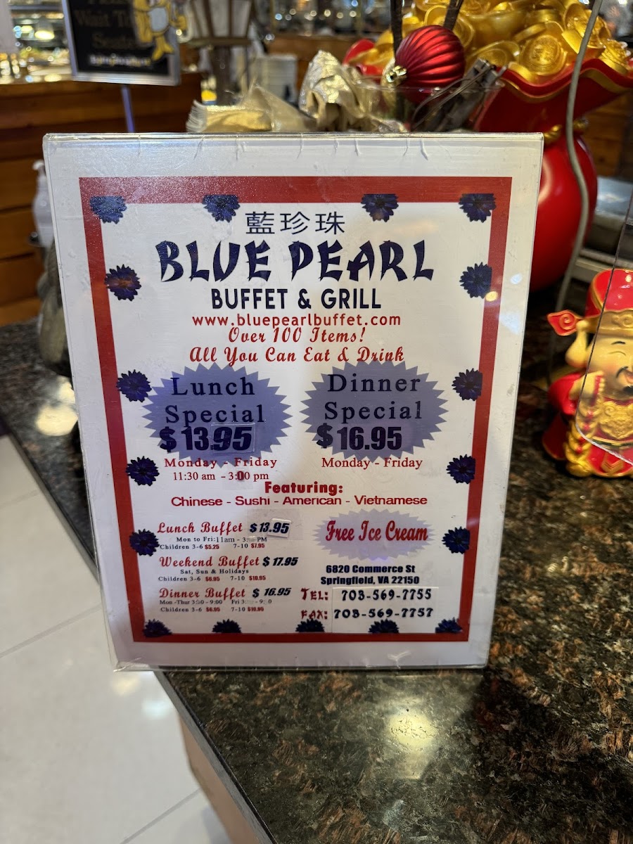 Welcome to Blue Pearl Buffet, a delightful buffet restaurant located at 6820 Commerce St, Springfield, VA. Known for its extensive culinary offerings, this buffet is a haven for seafood and Asian cuisine enthusiasts. Dine on favorites like the Fried Fish served with crispy French fries or fried rice for just $11.95, or indulge in the spicy depths of General Tso's Chicken and Hunan Beef, which showcase bold flavors at $12.95.